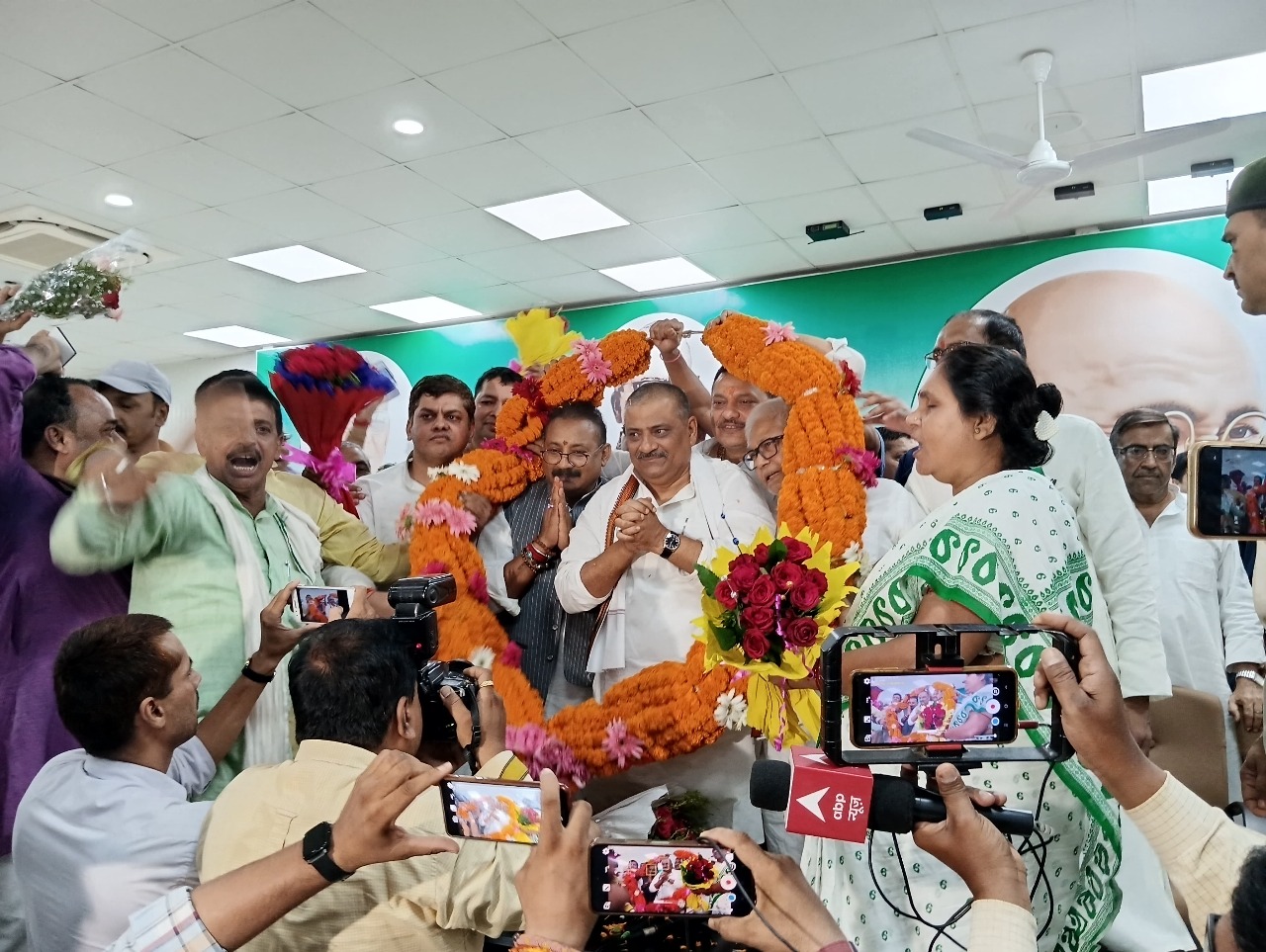 The Janata Dal (United) was formed with the merger of the Sharad Yadav faction of the Janata Dal, the Lok Shakti Party and the Samata Party on 30 October 2003. But the Election Commission of India refused the merger of the Samata Party, then Brahmanand Mandal became the president, but he was suffering from Alzheimer’s disease and not physically well, so Uday Mandal became president[9] and he has taken charge of the Samata Party. Janata Dal (United)’s party mentor and patron is the veteran socialist leader George Fernandes. JD(U) is currently a part of the National Democratic Alliance.