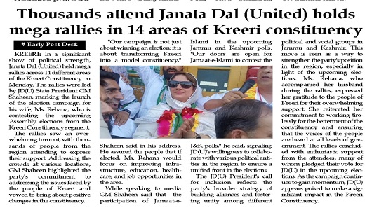 Read MoreJanata Dal United Holds Mega Rally in Kreeri Constituency